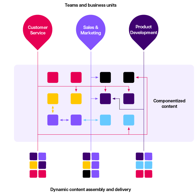 Structured content management breaks your information down into smaller building blocks (components) that become your single source of truth. These are easy to create, update, automate and reuse globally, so you can work confidently at the scale and speed you need.