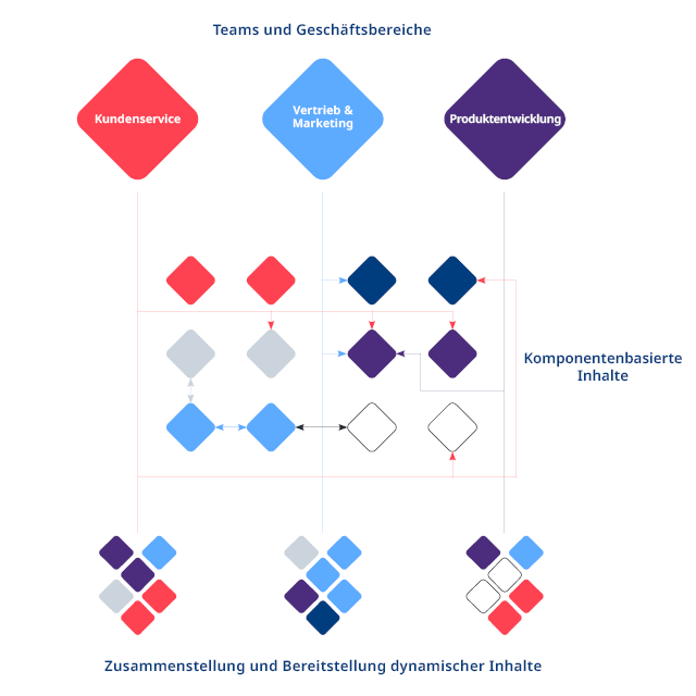 Structured Content Management unterteilt Ihre Informationen in kleinere Bausteine (Komponenten), die eine einheitliche Wissensquelle bilden. Sie lassen sich einfach erstellen, aktualisieren, automatisieren und global wiederverwenden, sodass Sie zuverlässig in der gewünschten Größenordnung und Geschwindigkeit arbeiten können.