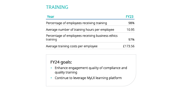 In FY23 we continued to make our popular Foundations of Leadership programme available to all divisions and functions, including a virtual format to maximise participation in a multi-location environment. This high-quality programme provides a consistent set of foundational leadership skills across RWS in support of our aspirations to develop common standards of high quality leadership throughout the Group. By the end of FY23 well over 1,000 leaders and managers had attended from multiple geographies, to the point where most existing managers have now been through the training.