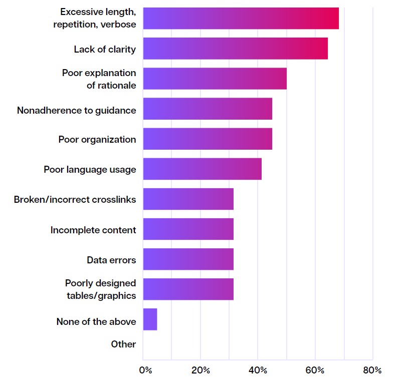 In a survey conducted by the European Medical Writers Association (EMWA), medical writers were asked what are main issues that are affecting the quality of the regulatory submission dossier. Their answers highlight the critical bottlenecks:
