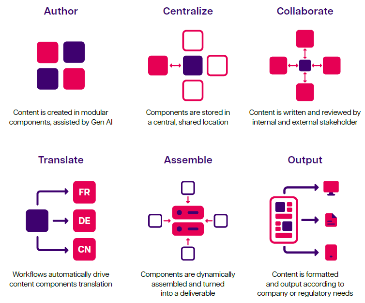 In pharmaceutical regulatory submission documentation, there’s a wide variety of stakeholders, ranging from medical writers to regulatory bodies to medical staff and patients. They all have different expectations and needs, making the process too complex to be managed sustainably in the traditional document-centric way. We have seen in the previous paragraphs of this article that content from one document is interrelated with multiple other documents, making changes, adaptations, reviews and approval cumbersome.