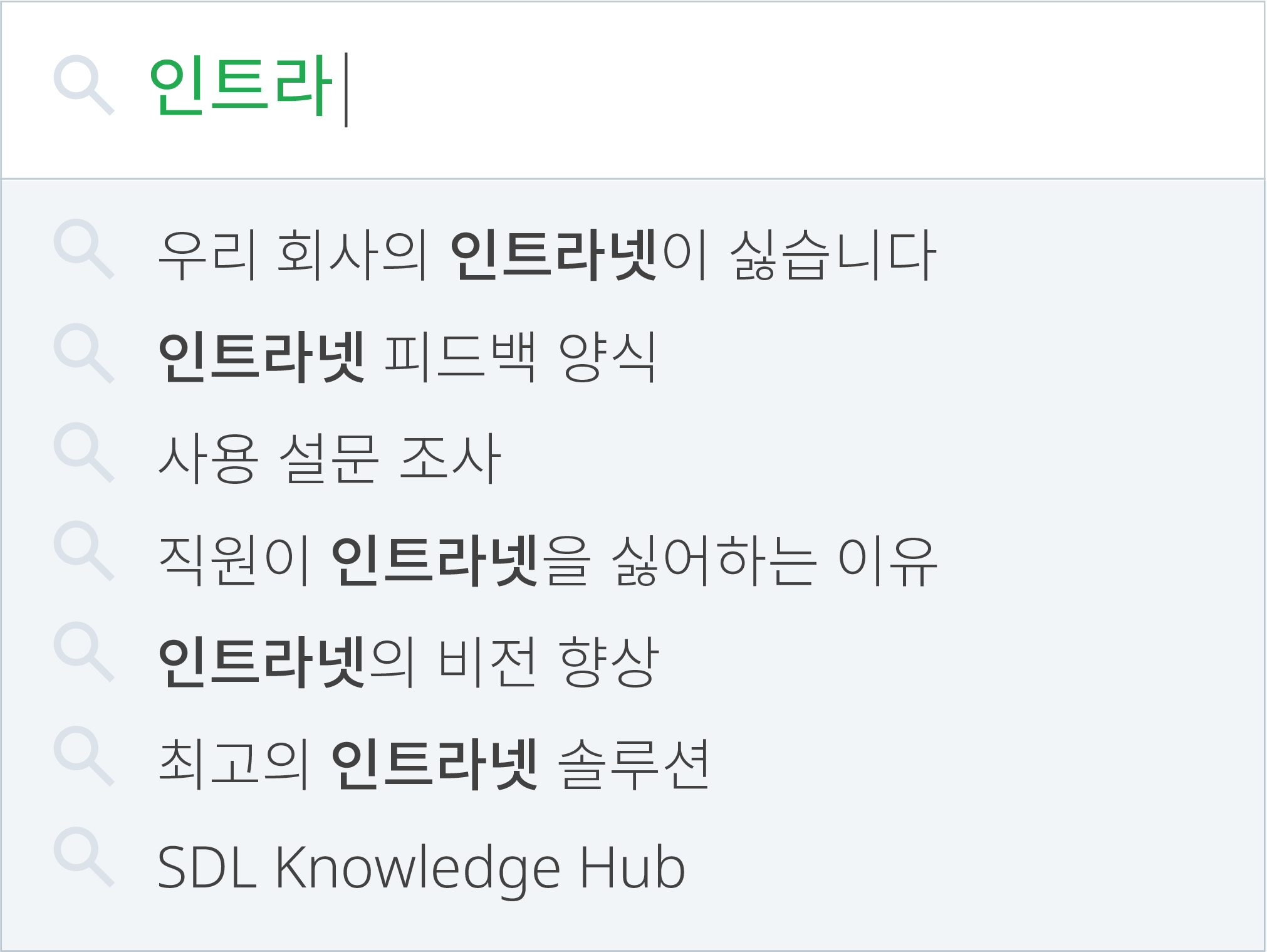 모든 언어로 정보를 검색하고 최신 버전의 정책, 절차, 간행물, 뉴스 기사 등에 빠르게 액세스할 수 있습니다.