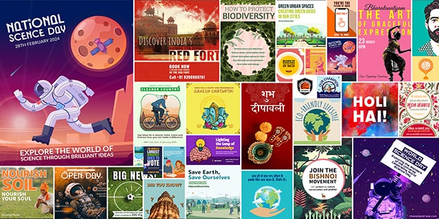 Creating templates for the Adobe Express cloud-based design tool that work across all channels and formats for Indic festivities and the education sector.